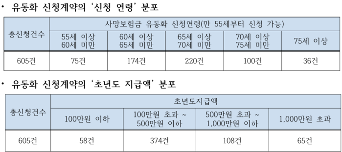사망보험금을 생전에 활용할 수 있는 ‘사망보험금 유동화 제도’가 시행 직후부터 소비자들의 관심을 빠르게 모으며 8영업일 동안 총 605건의 신청이 접수된 것으로 나타났다.