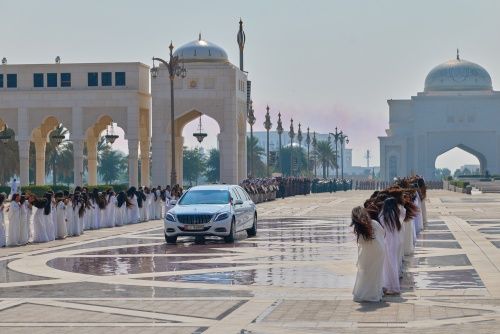 18일(현지시간) 오전 정상회담을 위해 이재명 대통령을 태운 차량이 아부다비 대통령궁에 진입하자 낙타병과 기마병들이 도열해 있었고, 의장대가 칼을 흔들며 환영했다.