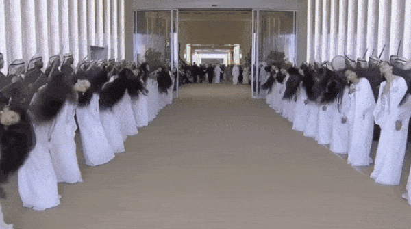 특히 흰색 전통 의상을 입은 여성들이 히잡을 풀고 긴머리를 흔드는 모습이 눈길을 끌었다. 이는 악기 연주에 맞춰 머리를 흔드는 '알 아이알라' 공연으로, 귀한 손님을 맞거나 결혼식·축제 등에서 선보이는 전통춤이다. 이 공연은 유네스코 인류무형문화유산으로 지정돼 있다.