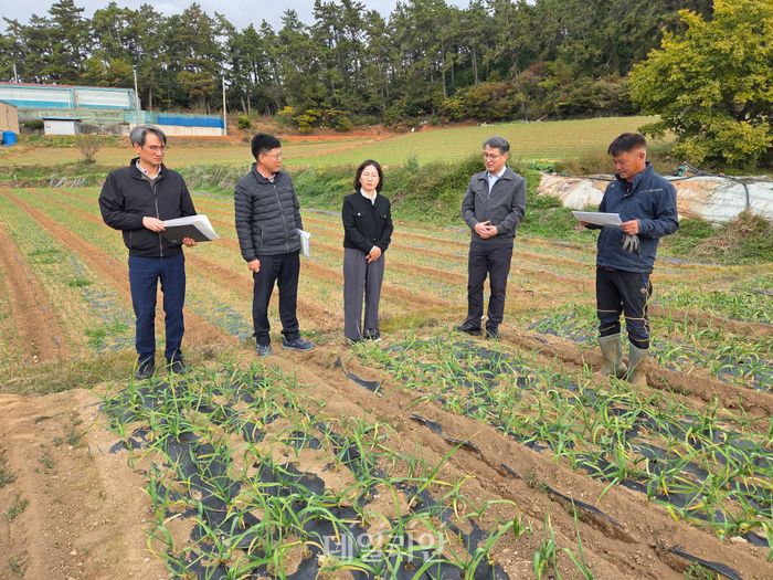 서효원 농촌진흥청 차장은 19일 전남 해남군 송지면에 있는 마늘 재배지를 찾아 파종 이후 생육 상황을 살폈다.