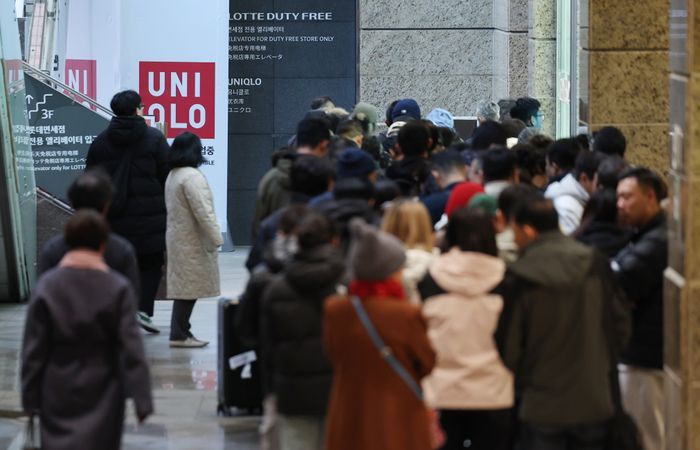 19일 서울 중구 롯데면세점 명동점에서 중국인들이 입장을 위해 대기하고 있다. ⓒ뉴시스