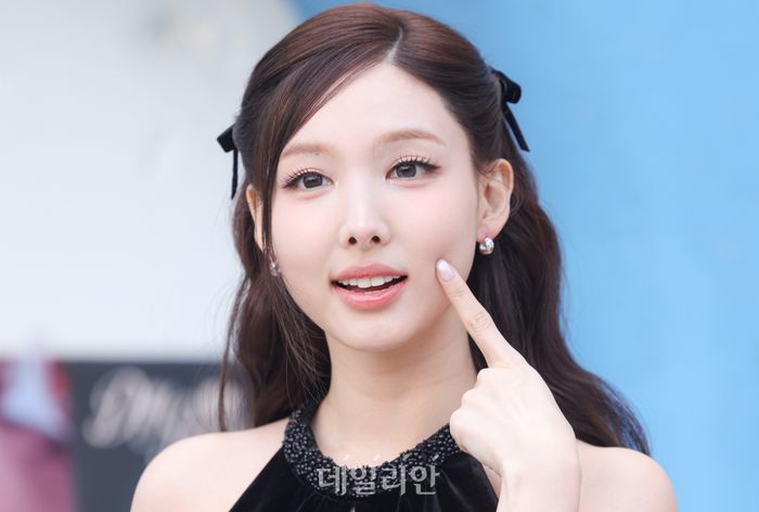 트와이스 나연이 20일 오전 서울 성동구 퓌 아지트 성수에서 열린 뷰티브랜드 퓌 신제품 'DIY 멀티 포켓 팔레트' 출시 기념 포토콜 행사에 참석해 포즈를 취하고 있다.