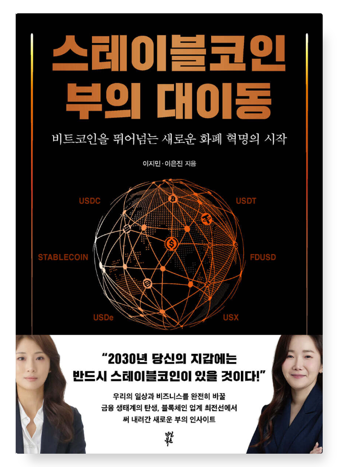 책 '스테이블코인 부의 대이동'은 이같은 흐름을 산업 최전선에서 직접 경험하고 기록한 책이다. 이 책의 공동 저자 이지민 스크롤(Scroll) 재단 한국 대표와 이은진 리플 APAC 세일즈 디렉터는 전통 금융과 블록체인을 넘나들며 새로운 금융 질서가 형성되는 과정을 체감한 인물로 꼽힌다.