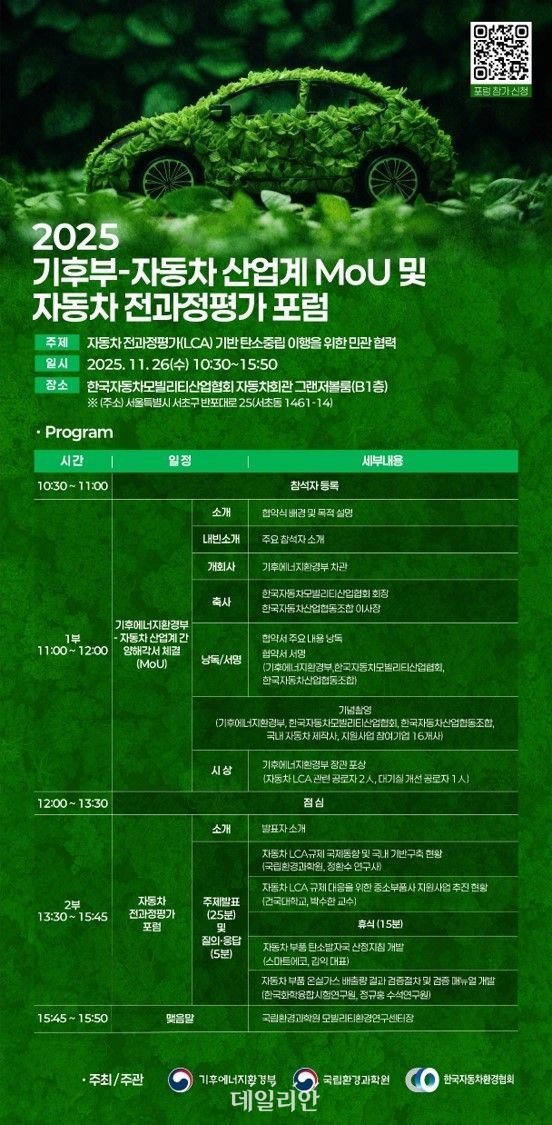 자동차 전과정평가 포럼 홍보 포스터.ⓒ기후에너지환경부