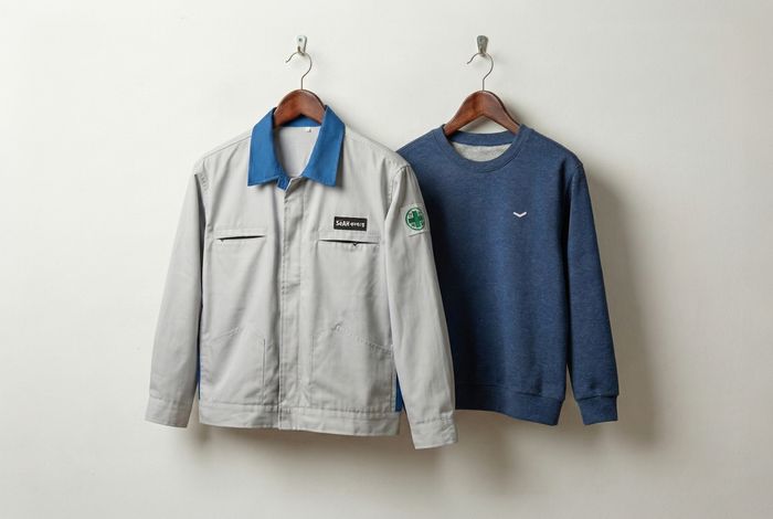 폐근무복 업사이클링 캠페인에 참여한 세아베스틸의 근무복과 업사이클링으로 탄생한 아동용 맨투맨ⓒ세아그룹