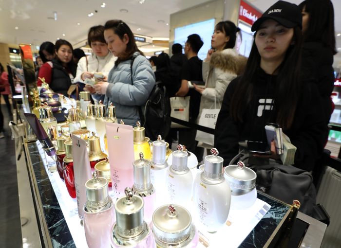 2023년 대한상공회의소가 한국 관광을 마치고 출국하는 외국인 관광객을 대상으로 실시한 조사 결과에 따르면, 방한 중국인의 75.8%가 화장품 및 향수를 구매한 것으로 파악됐다.