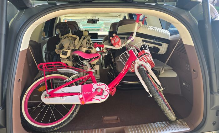 올해로 일곱 살이 된 딸은 외출, 특히 여행을 갈때 가져가고 싶은 '보물'이 유난히 많다. 18인치 자전거부터 킥보드, 심지어 장난감 캐릭터 집까지 자기 캐리어를 따로 챙길 정도다. 현재 보유하고 있는 세단은 전장 5035㎜, 전폭 1880㎜로 결코 작은 차는 아니지만, 전고가 1460㎜에 불과해 18인치 자전거 하나만 넣어도 트렁크 입구가 꽉 막힌다. 그것도 자전거 핸들을 이리저리 비틀어 구겨넣듯 눕혀야 겨우 들어갈 정도다.