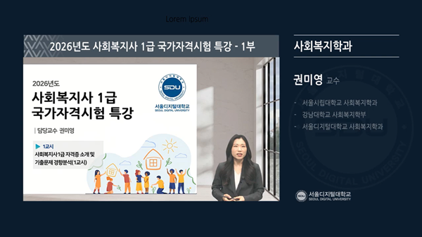 사이버대학 서울디지털대학교(총장직무대행 이영수) 사회복지학과가 '2026년 사회복지사 1급 국가시험 대비를 위한 온라인 특강’을 공개했다.
