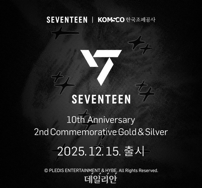 한국조폐공사는 내달 15일 공사 쇼핑몰과 공식 채널에서 인기 그룹 ‘세븐틴’ 데뷔 10주년 기념 공식 골드&실버를 출시한다.