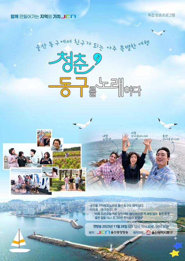 특집 프로그램'청춘, 동구를 노래하다'는 28일 낮 12시, 오후 5시, 밤 8시 30분, JCN 울산중앙방송 지역채널을 통해 총 3회 방송된다.