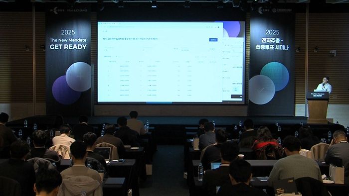 특히 참석자들을 주주로 가정한 ‘가상의 전자주주총회’를 시연해 이목을 끌었다. 의무화 대상 기업들이 향후 주주총회 진행 시 직면하게 될 상황과 대응방안을 생생하게 구현함으로써 참석자들의 이해를 도왔다.
