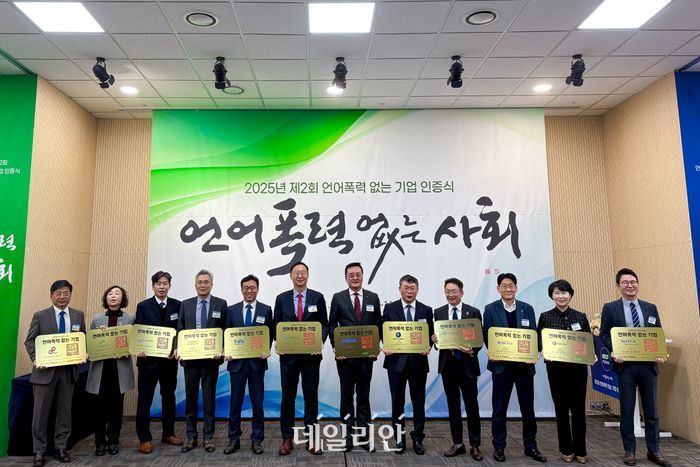 올해 2회를 맞이한 '언어폭력 없는 기업 인증제'는 윤경ESG포럼이 주최하고 산업정책연구원과 서울과학종합대학원이 주관한다. 언어폭력 없는 기업 만들기를 모범적으로 실천하고 있는 기업을 평가해 인증·수상하는 제도다.