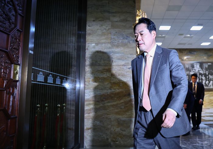 장동혁 국민의힘 대표가 27일 오후 국회에서 의원총회에 참석하기 위해 이동하고 있다. ⓒ뉴시스