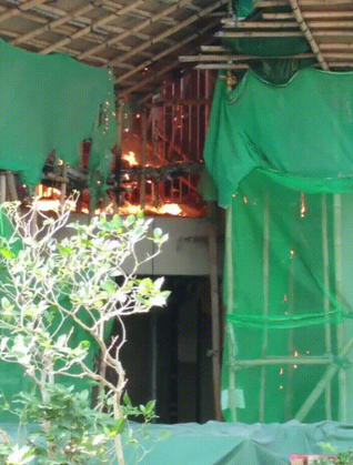 26일 오후 2시 51분 홍콩 북부 신계지구 타이푸의 한 고층아파트에서 화재가 발생하고 있다. ⓒ영국 방송 BBC 홈페이지 캡처