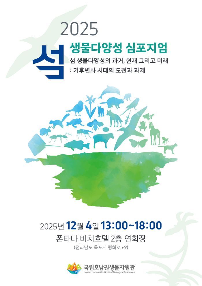 국립호남권생물자원관은 다음달 4일 전남 목포시 폰타나비치호텔에서 '2025 섬 생물다양성 심포지엄'을 개최한다고 28일 밝혔다. 올해 심포지엄의 주제는 '섬 생물다양성의 과거, 현재 그리고 미래: 기후변화 시대의 도전과 과제'다.