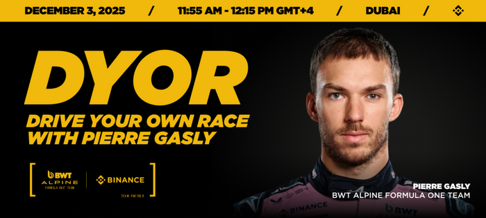 피에르 가슬리 F1 드라이버가 3일(현지시간) 두바이 블록체인 위크 2025에 참가해 스포츠와 가상자산의 융합에 대해 논의한다. ⓒ바이낸스