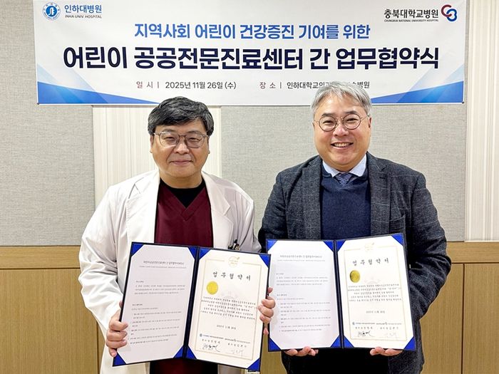 인하대병원 어린이공공전문진료센터는 지난달 26일 충북대병원 어린이공공전문진료센터와 어린이 건강 증진을 위한 유기적인 협력을 목표로 업무협약(MOU)을 체결했다고 1일 밝혔다.