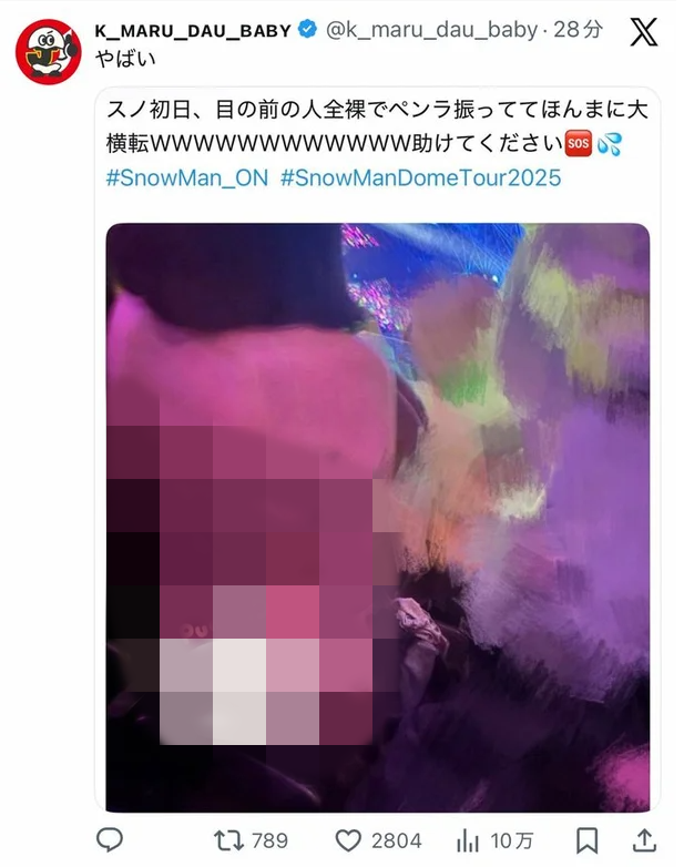 한 누리꾼은 "스노우맨 첫날인데, 바로 내 눈앞에서 어떤 사람이 전라로 응원봉을 흔들어서 진짜 충격받았어요. 도와주세요"라며 영상을 SNS에 올렸다. 영상에는 아무것도 입지 않은 채 응원봉을 흔드는 여성의 뒷모습이 담겨 있었다.