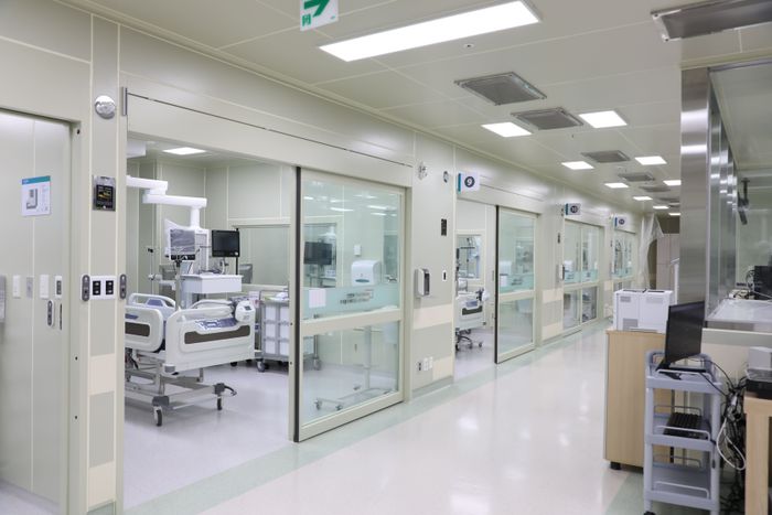 격리 중환자실은 각각의 환자에게 최적화된 치료 공간으로 음압 시스템이 갖춰진 병실이다. 환자나 의료진에게 필요한 맑은 공기를 급기구로 공급하고, 병실 공기는 강력한 헤파필터로 세균과 바이러스를 걸러서 배기구로만 배출한다.