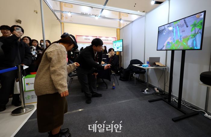 지난 2일 오후 서울 중구 동대문 디자인플라자(DDP)에서 열린 청년취업사관학교 AI 인재페스티벌에서 참석자들이 마이크로소프트의 홀로렌즈를 체험을 해보고 있다. ⓒ뉴시스