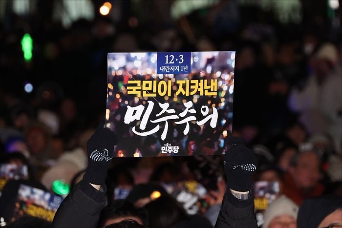 12·3 비상계엄 1년을 맞은 3일 오후 국회 앞 국회대로에서 열린 '12·3 내란·외환 청산과 종식, 사회 대개혁 시민 대행진' 집회에서 시민들이 구호를 외치고 있다. ⓒ데일리안 홍금표 기자