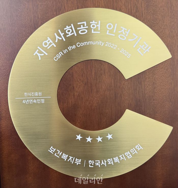 한식진흥원은 보건복지부와 한국사회복지협의회가 공동 주관하는 ‘지역사회공헌 인정기관’에 4년 연속 선정됐다고 9일 밝혔다.