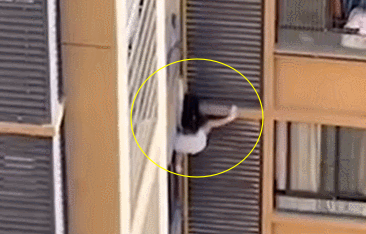 고층 아파트 창문 밖에 한 여성이 매달려 있는 영상이 공개돼 논란이다.