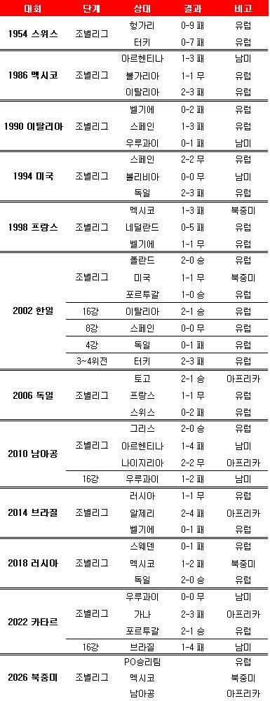 한국 축구 월드컵 본선 성적. ⓒ 데일리안 스포츠