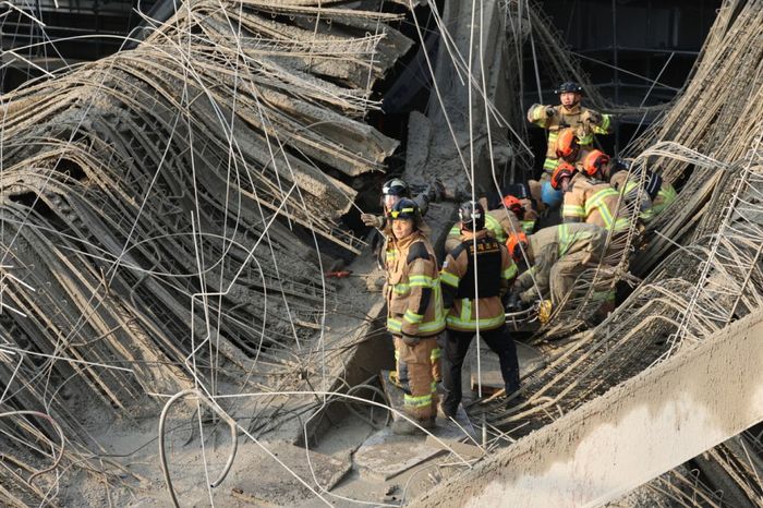 사고는 공사 현장 레미콘 타설 작업 중 2층이 붕괴되면서 벌어진 것으로 전해졌다.
