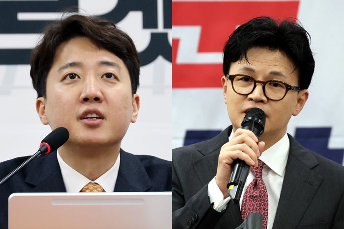 이준석 개혁신당 대표(왼쪽)와 한동훈 전 국민의힘 대표. ⓒ연합뉴스