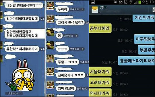 엄마는 자녀에게 “서울대가줘. 고려대가줘. 연세대가줘”라고 연달아 답장해 더 이상 할 말이 없게 만든 것.