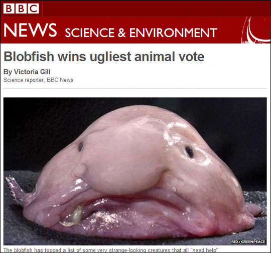 영국 BBC 방송은 12일(현지시각) 이색단체 ‘못생긴 동물 보호 협회(The Ugly Animal Preservation Society)’가 세상에서 가장 못생긴 동물로 ‘블롭피쉬’를 선정했다고 보도했다.