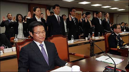 이찬열 민주당 의원 역시 “선서까지 안한다는 건 기본적인 예의가 아니라고 생각한다”며 “국민에 대해서 거짓말도 하겠다는 자세로밖에 해석할 수 없다”고 김 전 청장을 비난했다.