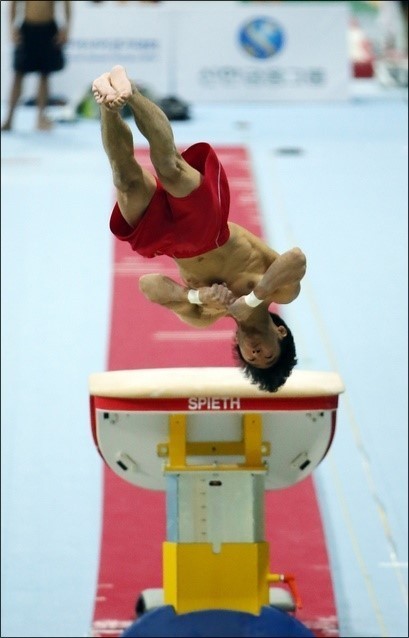 ‘2010 광저우아시안게임’ ‘2012 런던올림픽’ 금메달리스트 양학선은 25일 남동체육관서 열리는 ‘2014 인천아시안게임’ 기계체조 도마 결승에 출전한다. 최대 라이벌은 ‘체조영웅’으로 불리는 북한 리세광(29)이다.