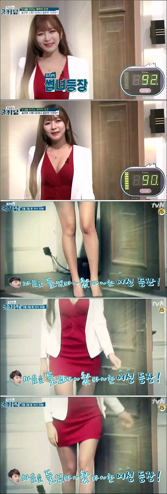 '썸에서 성공하는 매력탐구생활' 코너에 등장한 김세라는 스튜디오에 들어서는 순간부터 '썸남' 홍진호 뿐 아니라 출연한 모든 남성 팬들의 가슴을 흔들기 시작했다.