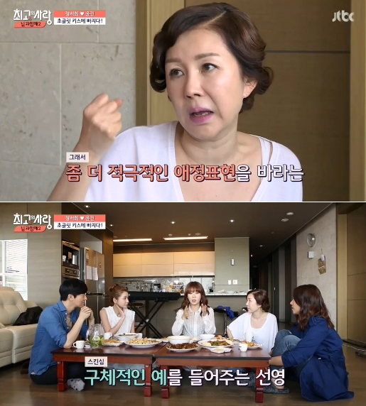 이에 안선영은 “지하철에서도 뽀뽀하고 길에서 솜사탕 먹다가도 뽀뽀하고 아이스커피 먹다가 얼음도 입으로 넘겨주고 그래라"라며 “스킨십도 운전처럼 자꾸 해야 사고가 안 난다. 그래야 빨리 원하는 목적지에 도착한다. 자꾸 안하면 면허가 아무 소용이 없다”고 말해 웃음을 자아냈다.