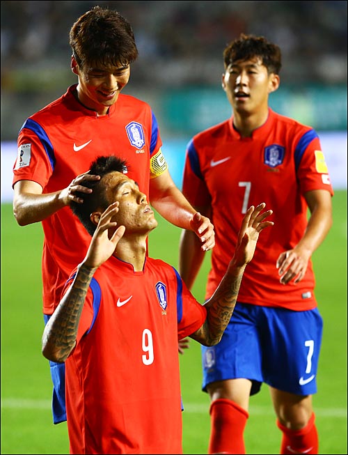 3일 오후 경기도 화성종합경기타운에서 열린 2018 러시아 월드컵 아시아지역 2차 예선 라오스와의 경기에서 석현준이 슛을 넣고 세리머리를 하고 있다.