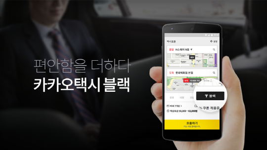 카카오는 국내 최초 고급택시 호출 서비스 ‘카카오택시 블랙’을 3일 정식 출시한다. 아이폰 앱스토어와 구글플레이에서 카카오택시 앱을 2.0버전으로 업데이트하면 이용할 수 있다. 첫 탑승자를 위한 할인쿠폰 이벤트도 마련됐다.