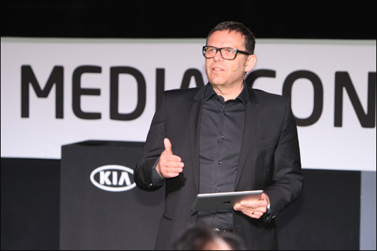 피터 슈라이어 현대·기아차 디자인 총괄 사장(당시 기아자동차 디자인 총괄 부사장)이 2012년 3월 29일 기아차 디자인 설명회에서 기아차의 디자인 방향성에 대해 설명하고 있다.ⓒ기아자동차