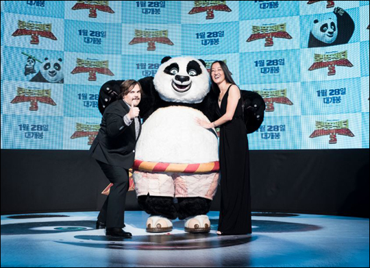 할리우드 스타 잭 블랙과 여인영 감독이 만난 '쿵푸팬더3'는 주인공 포가 쿵푸 마스터가 되는 이야기를 담았다.ⓒCJ엔터테인먼트