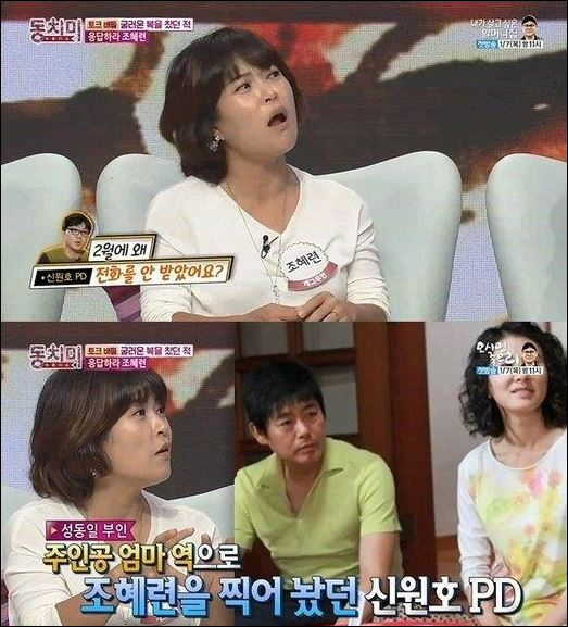 조혜련은 "그렇게 7개월을 있다가 돌아왔는데 '응답하라 1997'이 난리가 났더라. 중국에 있을 때는 몰랐다. 그 후에 여의도에서 신원호 PD와 오랜만에 만났는데 '누나 그때 왜 전화 안 받았느냐'고 하더라. 알고보니 '응답하라 1997'에서 이일화 씨가 연기하고 있는 주인공 엄마로 날 찍어 놨었다고 하더라"고 전했다.