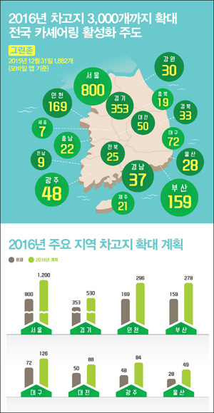 수도권 이외 지역에도 550개 차고지 신설, 전국 카셰어링 활성화 선도
