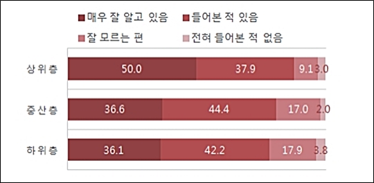 한편 성적과 경제수준이 상위권인 학생일수록 상대적으로 일베 경험도 많은 것으로 나타났다. ‘일베에 들어가 본 적이 없다’는 응답은 남학생(87%)보다 여학생(94%)이 많았으며, 성적이 높은 학생(83%)보다 성적이 중간인 학생(94%)이, 경제수준이 높은 학생(84%)보다 경제수준이 중간인 학생(91%)이 상대적으로 비율이 높았다.
