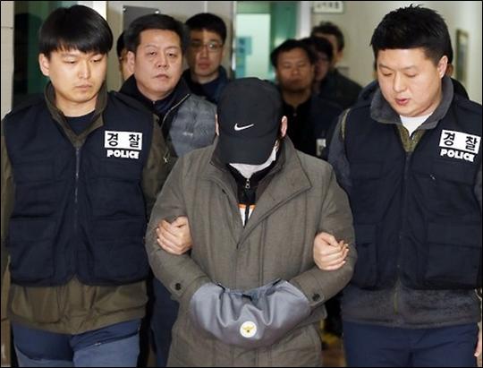 중학생 딸을 때려 숨지게 한 뒤 11개월 가까이 방치한 혐의를 받는 아버지가 3일 부천시 소사경찰서에서 유치장으로 이동하는 모습 ⓒ연합뉴스