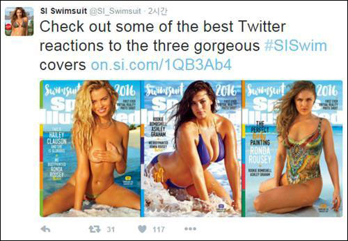 미국의 유명 스포츠 주간지 '스포츠일러스트레이티드(SI)'는 15일(한국시각) 로우지를 비롯해 헤일리 클라우손, 애슐리 그레이엄을 표지 모델로 내세운 2016년 SI 수영복 특집호를 공개했다.