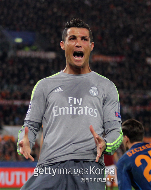 크리스티아누 호날두가 ‘2015-16 유럽축구연맹(UEFA) 챔피언스리그’ 16강 1차전 AS 로마와의 원정경기에서 골을 성공시킨 뒤 기뻐하고 있다. ⓒ 게티이미지