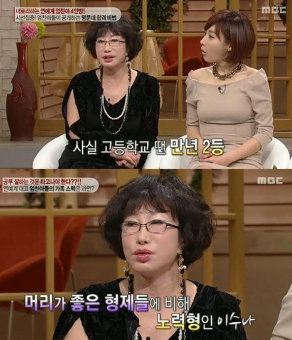 이날 이수나는 "첫째 오빠가 한양대 기계공학과 출신이고 둘째 오빠는 서울대 의대 출신이다. 언니들은 경기여고 이화여고 나왔다"라고 집안을 공개해 이목을 끌기도 했다.