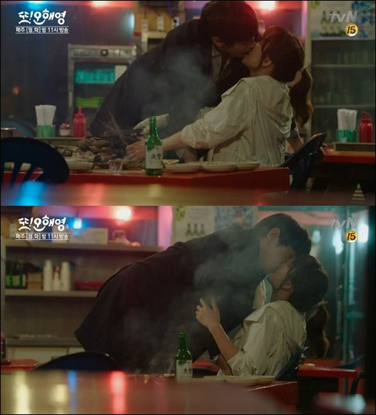조개를 굽는 해영을 사랑스럽게 바라보던 도경은 갑자기 자리에서 일어나 의자를 밀어 당기고 해영과 입맞춤을 나눴다.