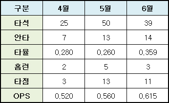 이대호 월간 성적. ⓒ 데일리안 스포츠