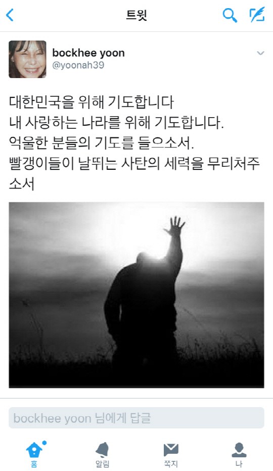 윤복희는 자신의 트위터에 "대한민국을 위해 기도합니다. 내 사랑하는 나라를 위해 기도합니다. 억울한 분들의 기도를 들으소서. 빨갱이들이 날뛰는 사탄의 세력을 물리치소서"라는 글을 게재했다.